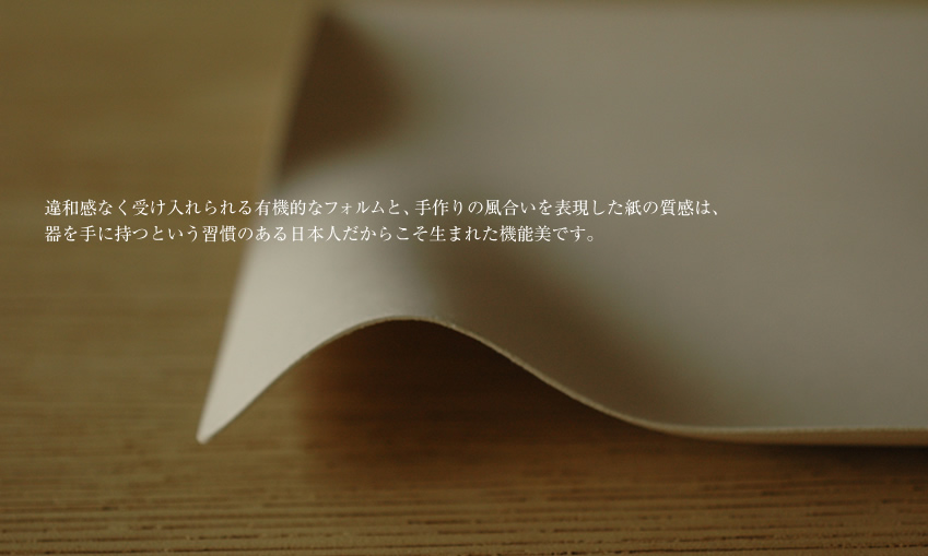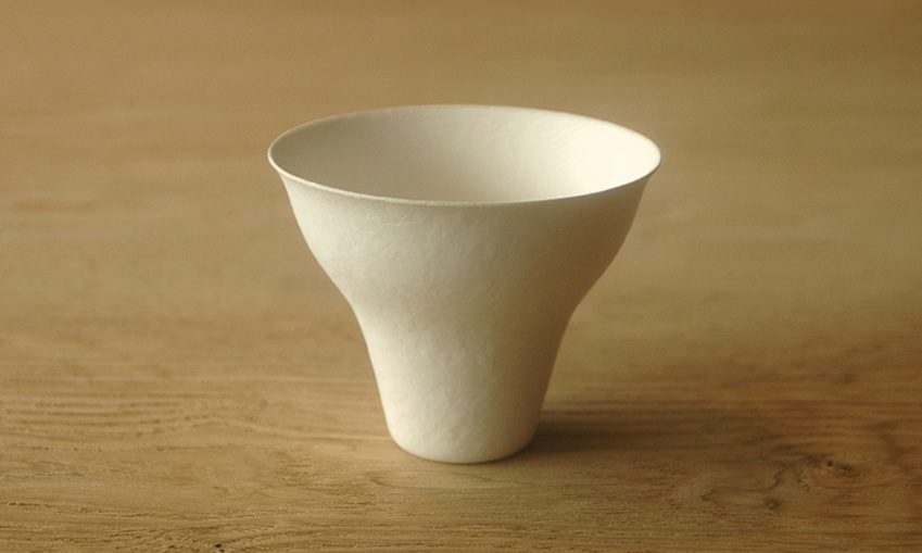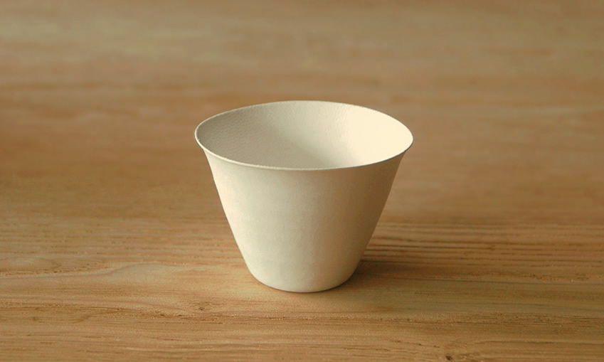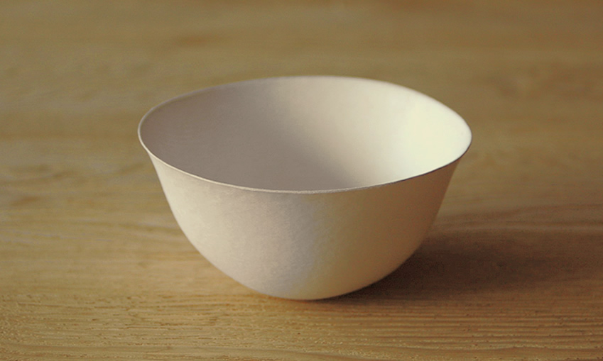 すっと手になじむこの有機的なフォルムは伝統的な日本の美意識を存分に表現した紙の器であると言えるでしょう。
