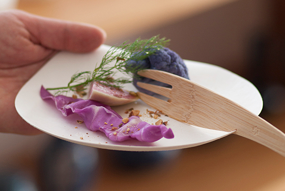 竹製のナイフとフォークを添えて、、、是非ご賞味ください。