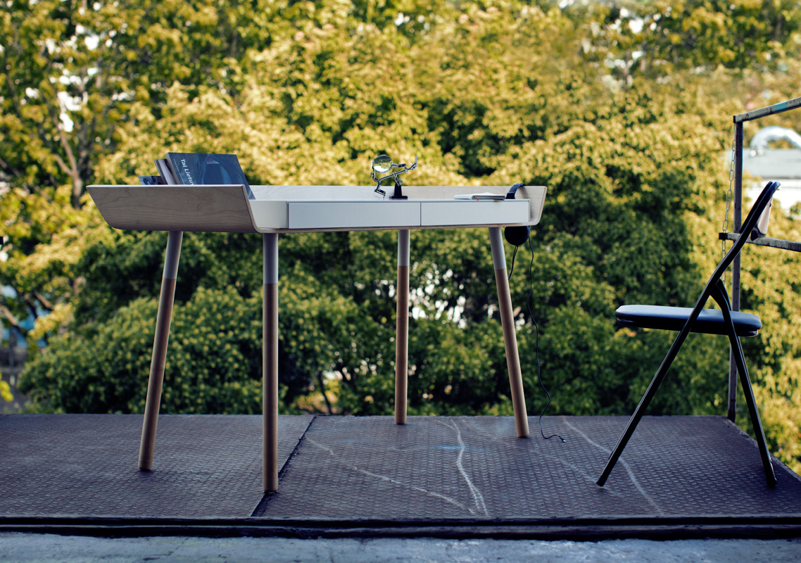 今必要のないものは、机脇に落としたり立てかけたりしておく。そうすることによって余計なものに埋もれてしまうことなく、ワーキングスペースがしっかりと確保される。必要になったら脇からすぐにとりだすことができる。まるでパソコンのデスクトップのように使用することができる、使い方次第では最強のデスクと言えるでしょう。