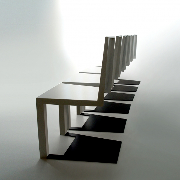 ずらっとならぶとこんな感じに。横から見ると影の部分が本物でないことがよくわかりますが、真正面から見ると、まるで本物の影のようにさえうつるというこのデザイン。