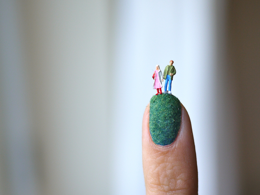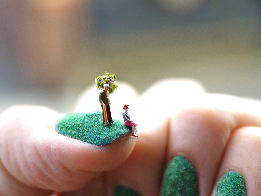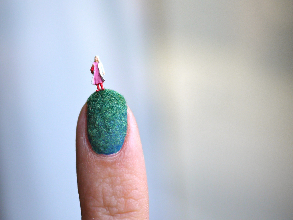 小さな小さな3人の爪の上の住人達。相当小さなミニチュアです。ちょっとでも触れてしまったら壊れてしまいそうなほどに小さくつくられたミニチュアです。