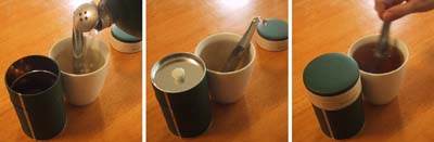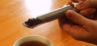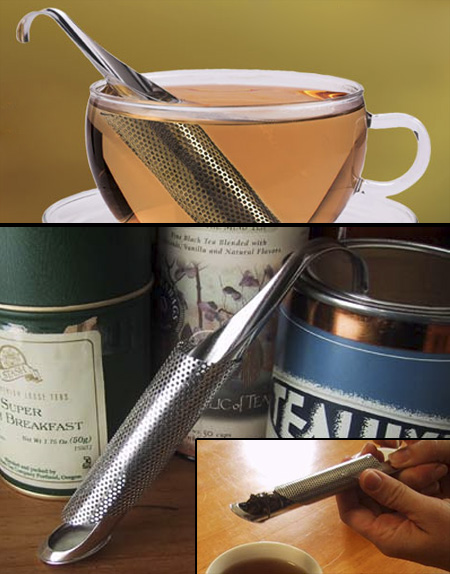 こちらはティーバッグならぬ、ティースティック。銀色の筒の中に紅茶の葉を詰め、筒に空いている穴から成分が抽出されるようにデザインされたもの。