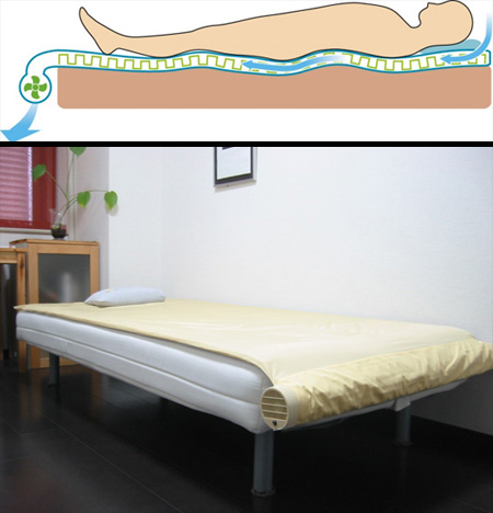どういうことかというと背中に空気が送り込まれるため、寝苦しい夜も快適に過ごすことが出来る・・・と言うベッドです。