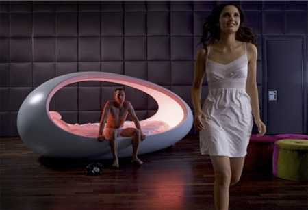 こちらは未来を感じさせるベッドですね。卵形をしており、その奥からほのかな灯りが灯されています。