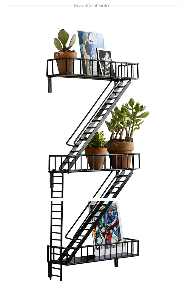 なんとこの非常階段をモチーフにした素敵な壁掛け棚「Fire Escape Wall Shelf」の値段は・・・129ドル!