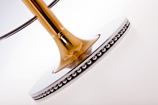 こちらは燭台の土台部分。金属の光沢が非常に美しくみるものの目を奪います。