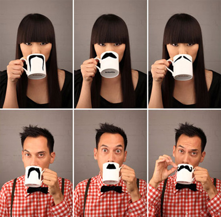 これはなかなか面白いデザインのマグカップです。マグカップの底に動物の鼻の部分が描かれており、マグカップで飲み物を飲んでいると上の写真のように底に描かれた動物になってしまうというデザイン。