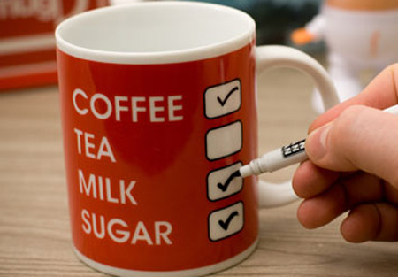 ティーなのか、紅茶なのか・・・忘れないようにチェックできる部分がデザインに組み込まれているマグカップ。