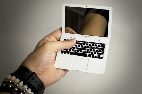 MacBookAirの隣に、ミニMacBookAir手鏡をおいたら面白そうです。ディスプレイ上部にきちんとカメラもついています。