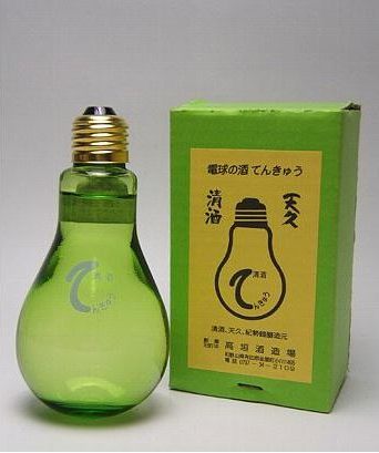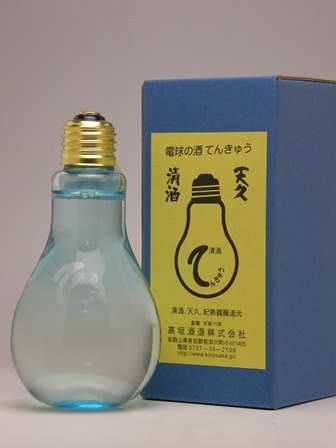 電球の中にお酒が入っている・・・という蔵元さんの遊び心が溢れるお酒があります。この一見変わった瓶に入っているお酒は、和歌山県の蔵元、高垣酒造さんの主力商品「天久(てんきゅう)」を詰めた非常に目を引く一品となっています。