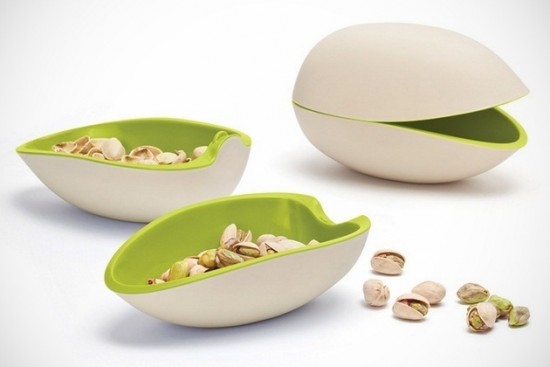 上下がまっぷたつにわかれるようになっていて、ピスタチオを剥いた後の殻を片方の器に入れることが出来るようになっています。