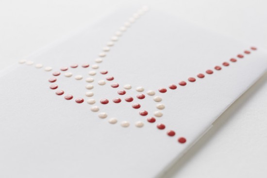 エンボス加工の上からUV印刷で仕上げることで、独特の立体感とグロスが生まれ、 シンプルで現代的な表現でありながらも、「祝う」気持ちを表すのに充分な質感を実現したいと考え、このデザインがうまれたとのこと。