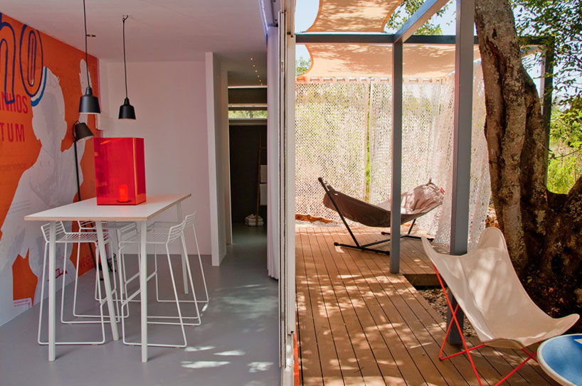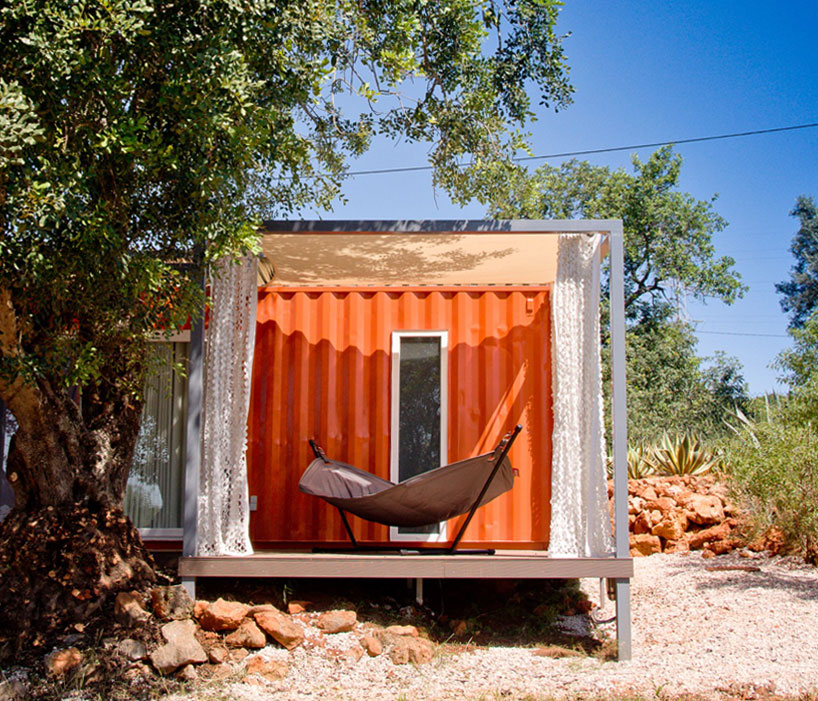 上の写真にちらりとみえているのが貨物輸送用コンテナでつくられたコンテナハウス「nomad living」です。オレンジ色が自然の中の緑の空間にはえます。