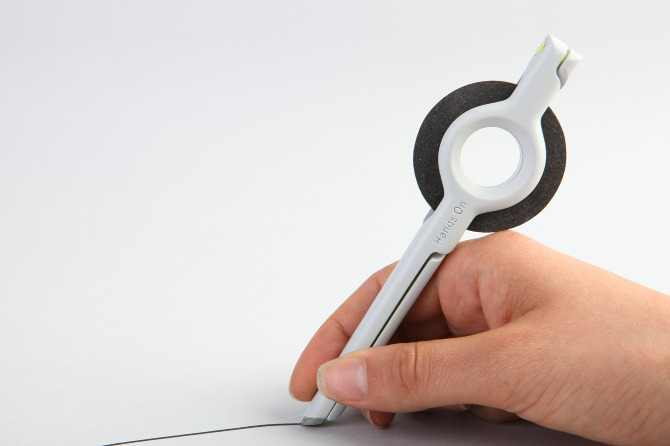 このスタイリッシュなデザインのペンの名前は「Paraline Dispenser」と言いリング状のテープがそのままペン先に流れていき、ペンとして使用できるという装置自体はアナログなのですが、デザイン的にはちょっと先の未来を感じるスタイリッシュなデザインのペンとなっています。