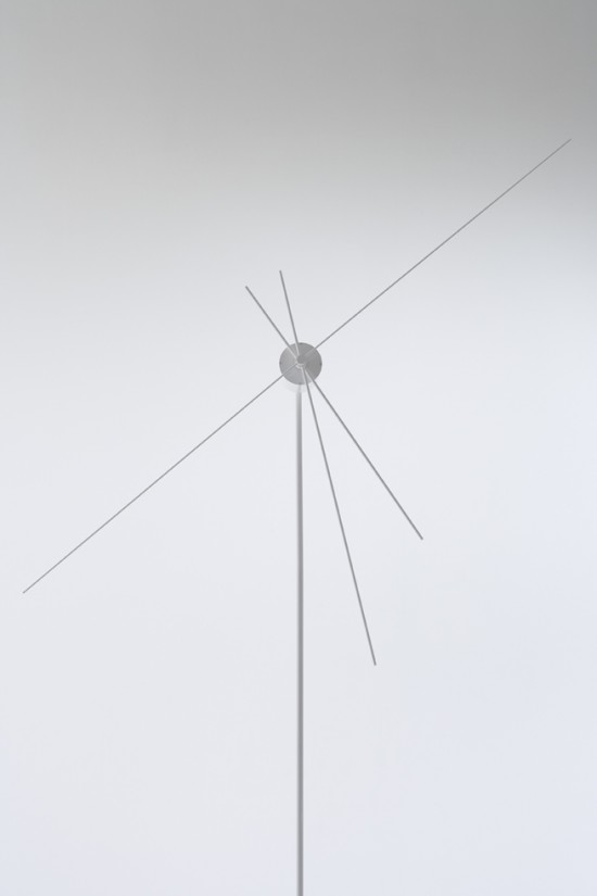 それで出来たのが上の写真の「kazadokei」。インテリア用の壁掛型や置型の時計ではなく、ビルや公園などで使われる大時計の内部機構を応用した高さ2メートル、秒針の長さが1.5メートルの時計となっています。