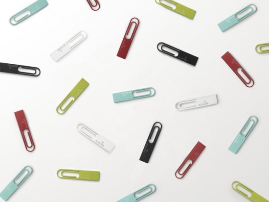 ペーパークリップとUSBメモリを融合させたデザイン。紙をとめる「ペーパークリップ」の形をしたUSBメモリ「DATA clip」