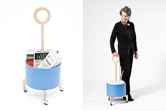 次に、中央のU-caneと呼ばれる「U」タイプのものですが実はこれ下部にバスケットがついており、それがマガジンホルダーになっています。雑誌だけでなく中にいろいろなものを入れて持ち運ぶことが出来るように工夫がされています。