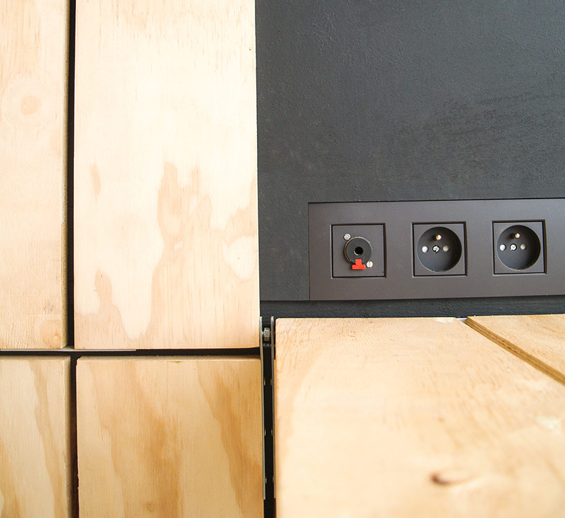 こちらの写真ではデスクを壁から出した状態。意外と奥行きがあるため雨風をしのげるちょっとしたワークスペースにもってこいかもしれません。