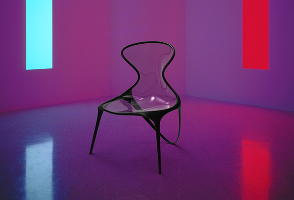中でも今回紹介する「Doudou Chair」は秀逸。透明なポリカーボネートを座面部分に使用したこと、さらに曲線を意識した艶やかなデザインにより、どことなく性的な印象を含み持ちながらも嫌らしくないデザインとしてデザインに落とし込むことに成功しています。