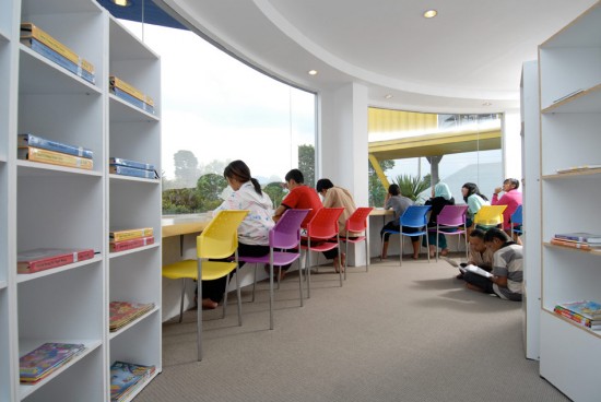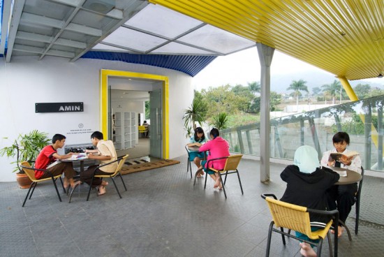 上の写真が噂の小さな診療所兼図書館のコンテナハウス。貧富の差が拡大しているインドネシアに置いて、小さな診療所を使うことが出来、さらに無料で本を読むことの出来る図書館となっています。その蔵書の数は6000冊以上。教育施設と診療所を併設することにより、地元民の人々の生活の向上を目指しこのコンテナハウスは建てられました。