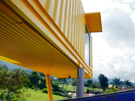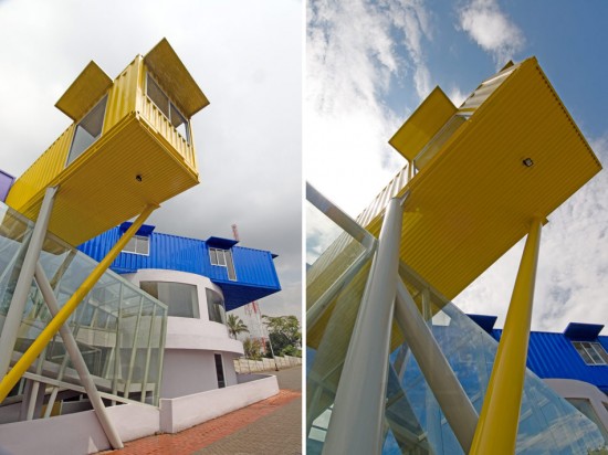 見た目もポップで非常に目を引くコンテナハウスとなっています。このカラフルなコンテナハウスはバトゥに建設されました。