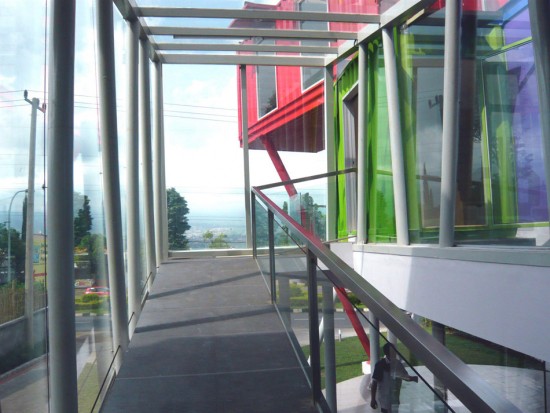 ガラス張りの坂道。ちょっとおしゃれ。