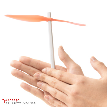 飛ばし方は一般的な竹とんぼと同じように手をこすり合わせるようにして飛ばします。このとき、プロペラの向きや位置、軸をかえると飛び方が変化します。