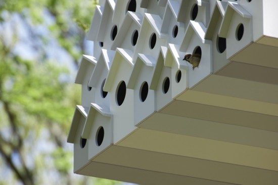 その反対側には78個もの鳥たちの共同住宅スペースがあります。