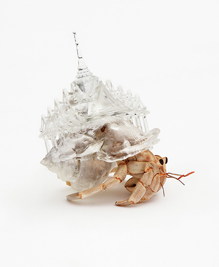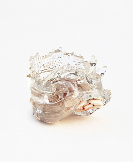 難しい話は後回しにして、まずは3Dプリンタでつくった透明なヤドカリの「やど」をご覧下さい。