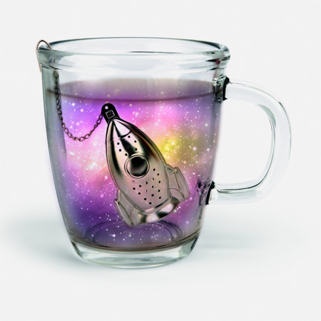 続いてこちらは小型のロケットのティーインフューザー(茶こし器)。カップの中には小宇宙が広がっています。