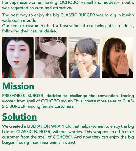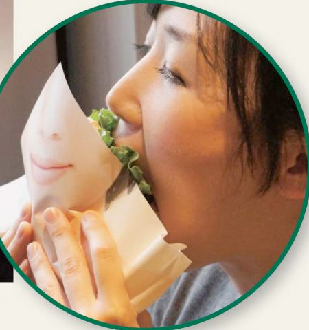 これからは外でも大口をあけてハンバーガーを食べることが出来ますよ!この包み紙、なんとクリエイティブなパッケージデザインでしょう!