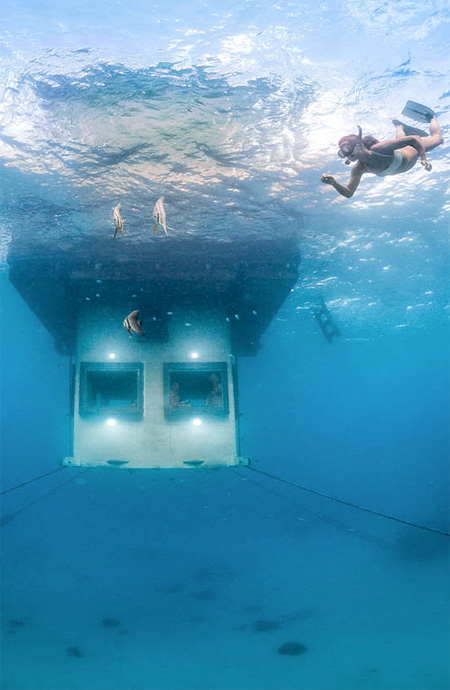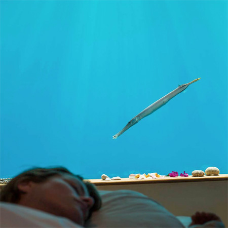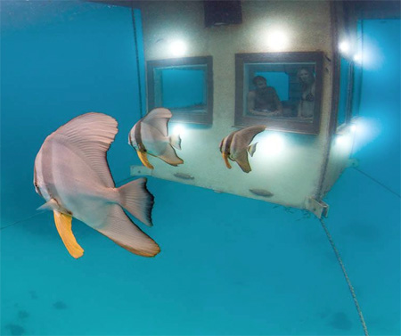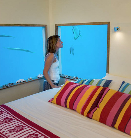 水中にあるベッドルームに泊まれば、まるで水族館に泊まっているかのように部屋の窓から様々な魚たちが泳ぐ姿を堪能することが出来ます。