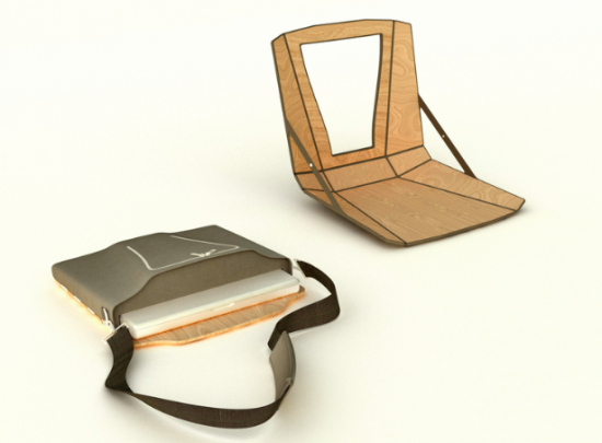 必要なのはあなたが座る為のスペース。それさえあれば、机や、椅子など必要ありません。だって、バッグについているのですから。