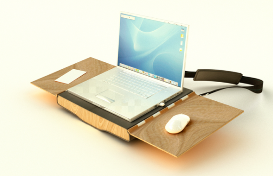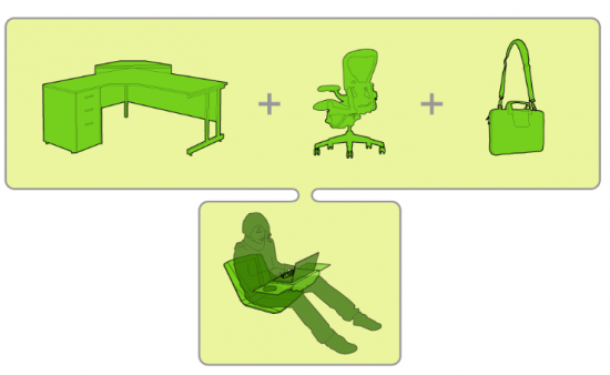 このバッグを使えば、どこででもワーキングスペースをつくることが可能です。それは昼下がりの公園でも、何処ででも構いません。
