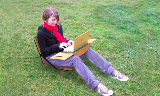 で、実際にこのバッグを試用して、昼下がりの公園の芝生で作業をしているイメージはこちら。なかなか気持ち良さそうだと思いませんか?