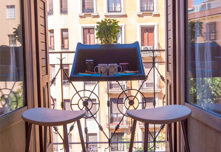 テーブルの先がフックのような形になっており、うえの写真のように手すりに引っ掛けるようにして使用します。テーブルはそのまま安定するので本屋、シャンパン、ワインなどをテーブルに持ってくれば外の優雅な景色を楽しみながら自由な時間を過ごすことが出来ます。