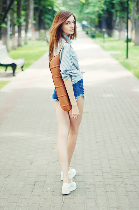 そう、この美女が背中に背負っているバッグこそがフランスパン専用のバッグ。どうですか?見た目が非常におしゃれだと思いませんか?