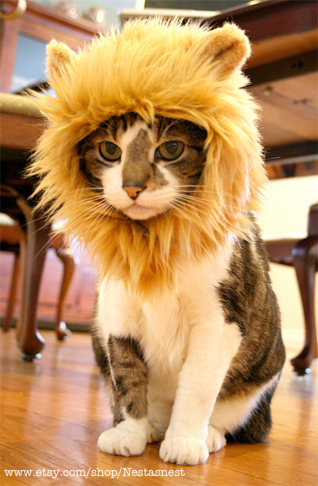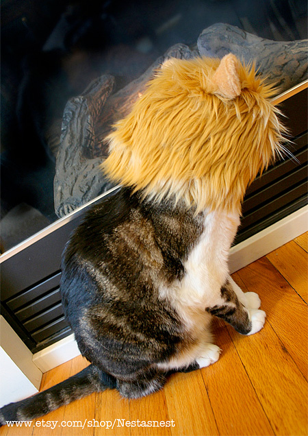 キュートなライオンハットはこちらから購入して頂けます:Lion Hat for Cats by Nestasnest on Etsy