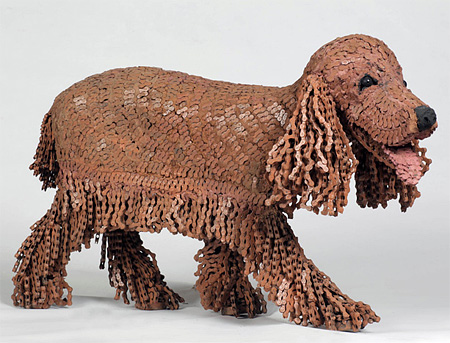 自転車のチェーンでつくられたとは思えないほど犬の毛の質感がしっかりと表現されています。