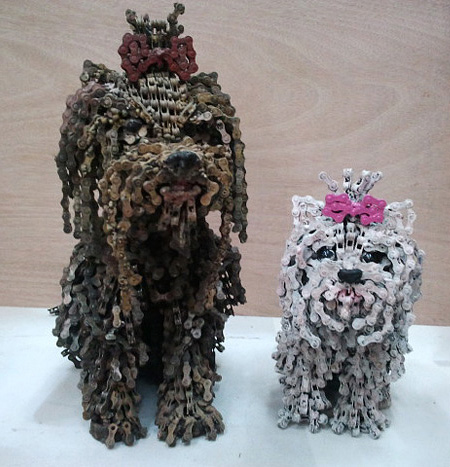 これはすごい!!自転車のチェーンでつくられたリアルな犬たち。