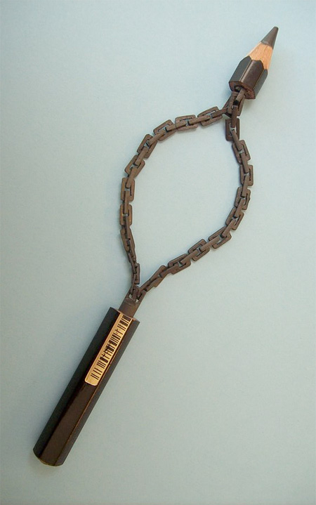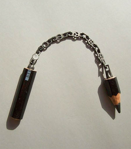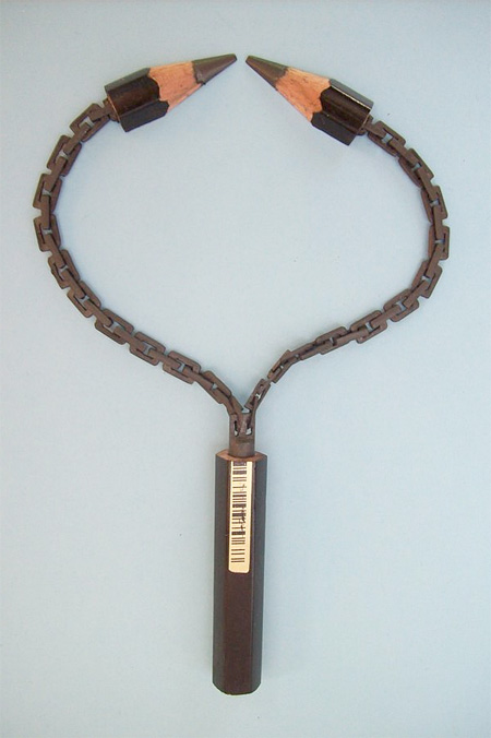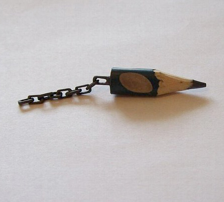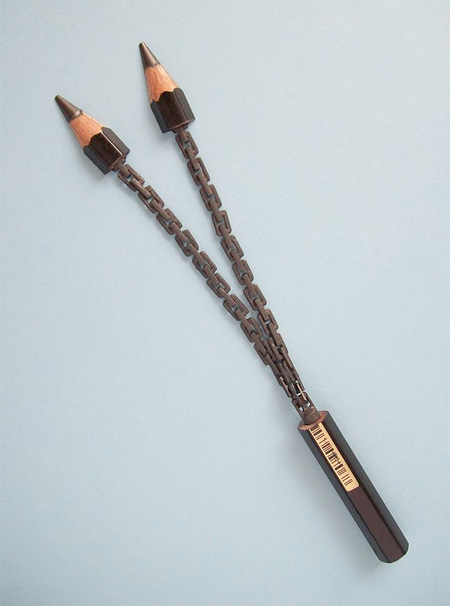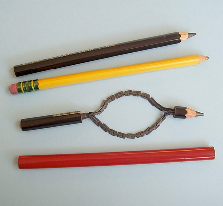 ちょっと変わったチェーンで繋がれている鉛筆。