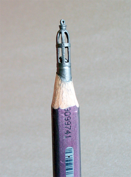 続いていったい鉛筆の芯をどう削ったらこんな作品がつくれるのだろうとしか思えないほど見事なカービング技術を用いてつくった作品。