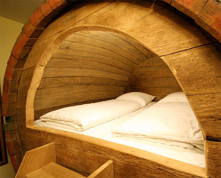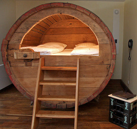 これは非常に面白いベッドです。ドイツのとあるホテルに設置されているベッドのようですが、なんと古くなったビア樽を使いその中をベッドにしてしまったという驚きのデザイン。