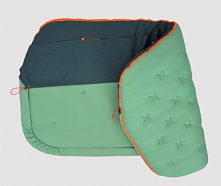 あら不思議。ジッパーは開閉式になっており、ジッパーをあければ上の写真のように布団となります。一眠りすることが可能となっています。