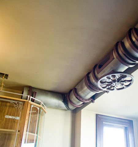 少し遠くから見るとこんな感じまるで蒸気の通り道のよう。壁にしっかりと備え付けられているため、比較的安定しているようです。