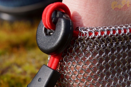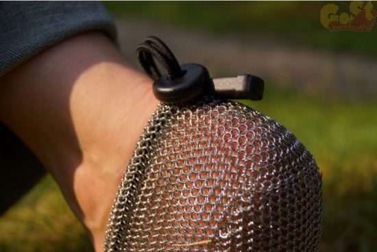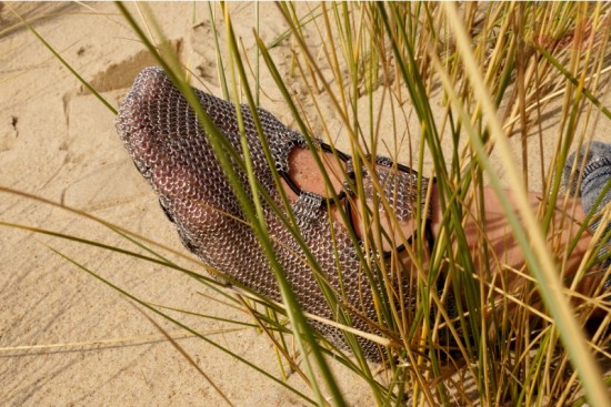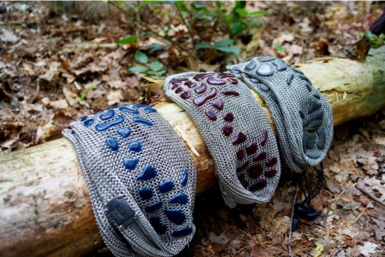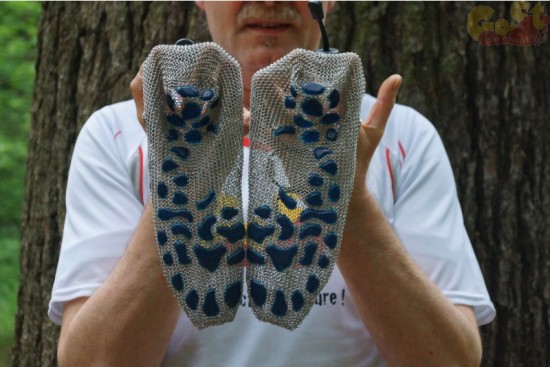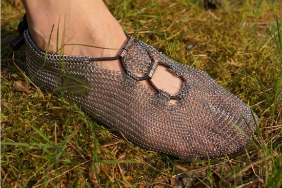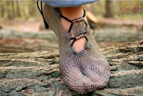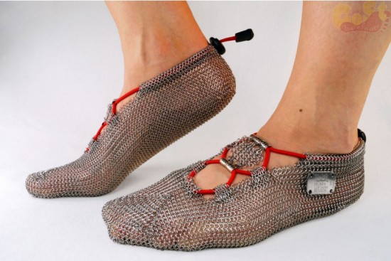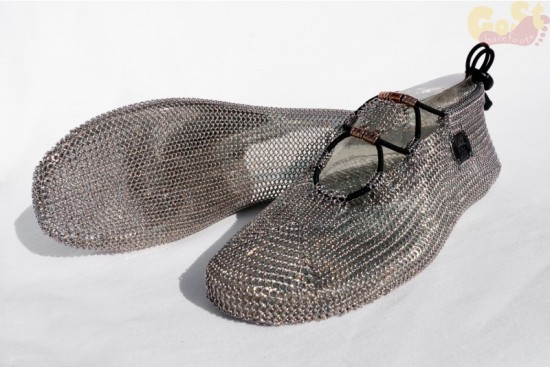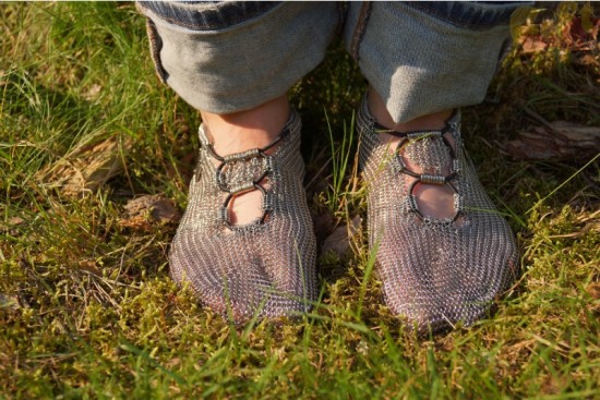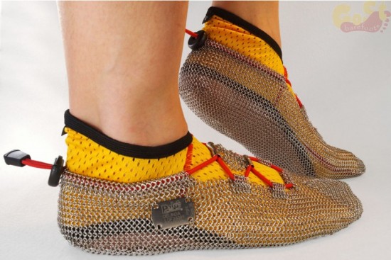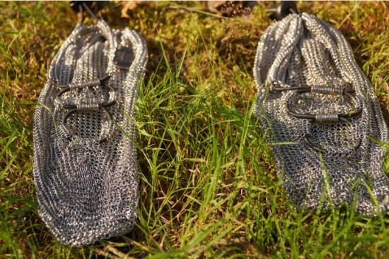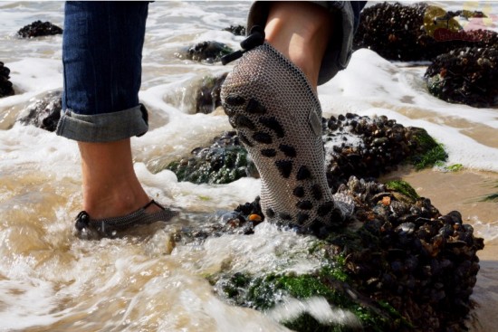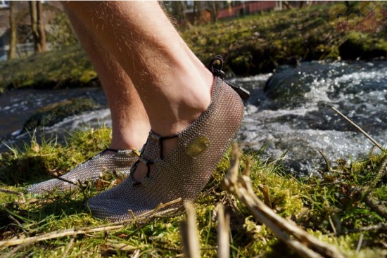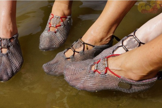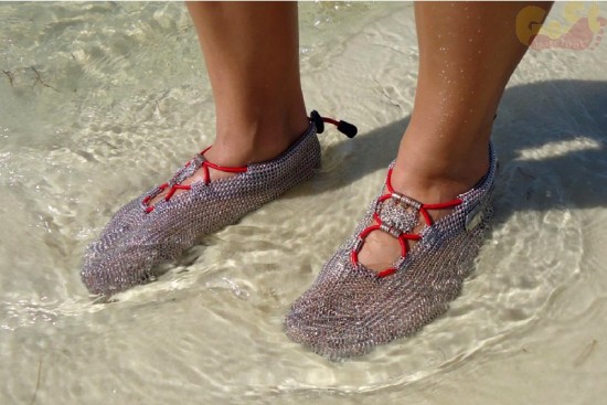 冷たい水の中にくさりかたびらのシューズで入ると、金属ならではの冷たさが足から徐々に染み渡ってきそう。