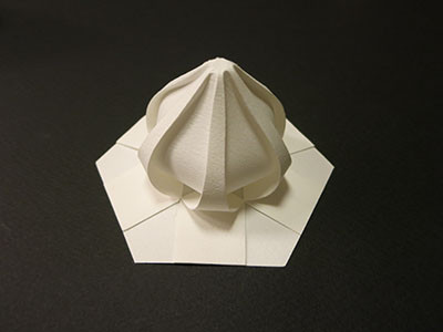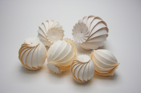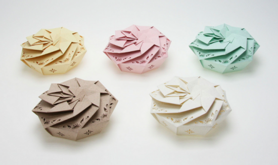 丸い形の折り紙アート。一枚の折り紙からつくられたとは思えないほど。