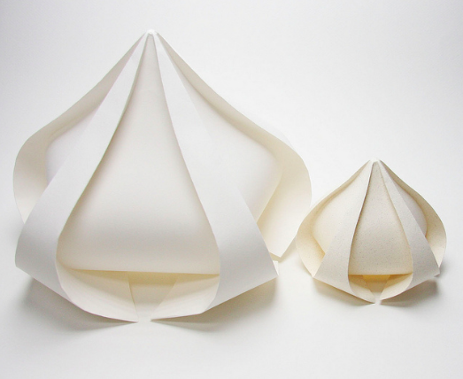 立体漉き和紙の技術を使い半分がシワ加工されたことにより美しい造形物として浮かび上がった照明「semi-wrinkle washi」 | ONE PROJECT