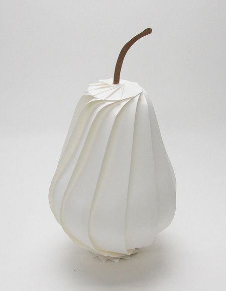 まずはこちらの洋梨の折り紙アートから。ものすごくリアルで本物の洋梨のようにさえ見えます。