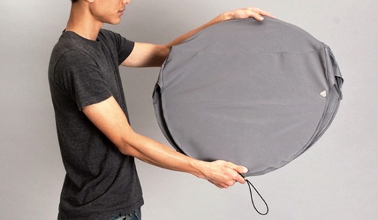 で、通常の状態はこんな感じ。まるで本物の盾のよう。それもそのはず、なんていったって雨傘ならぬ雨盾ですからね。